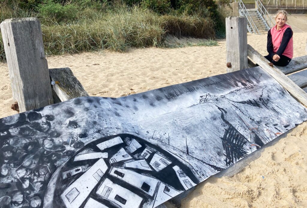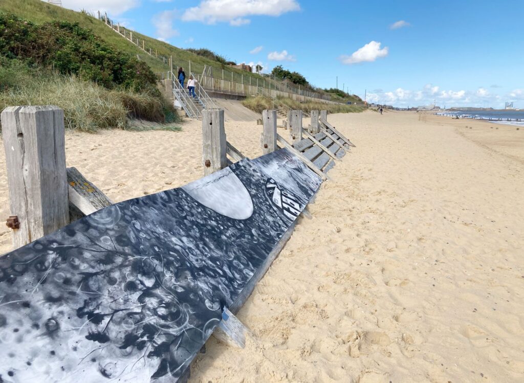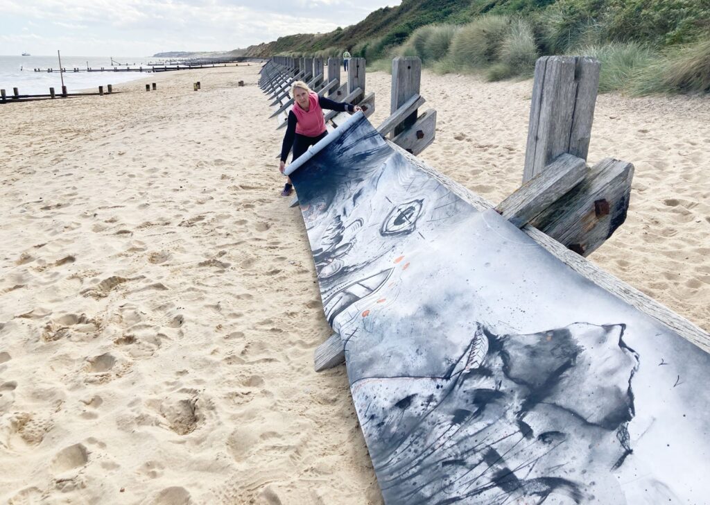 Join Natasha on Sunday 27th October, from 11 am to 2 pm, weather-dependent, where she will exhibit her work on the sand against the natural sea defences of the southern side of Gorleston On Sea, Norfolk (Lower Esplanade, NR31 6EZ).